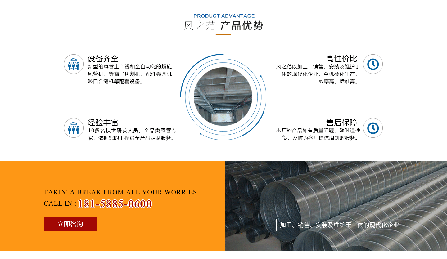 安徽風(fēng)之范通風(fēng)設(shè)備有限公司,是北京恒通偉業(yè)通風(fēng)設(shè)備有限公司再創(chuàng)的新臺階,多年來,公司員工憑著“誠信敬業(yè)、團(tuán)結(jié)拼搏、勇于開拓、務(wù)實進(jìn)取”的企業(yè)精神,先后承接了多項重點工程項目,使公司健康穩(wěn)步發(fā)展。現(xiàn)由于公司的壯大,業(yè)務(wù)的拓展,又于2016年底,成功坐落于安徽省合肥市包河區(qū)。本公司生產(chǎn)設(shè)備精良,技術(shù)力量雄厚,質(zhì)保體系完善!讓用戶體驗到,貼心的服務(wù),無憂的售后!風(fēng)之范是以加工、銷售、安裝及維護(hù)于一體的現(xiàn)代化企業(yè),同時以“創(chuàng)未來之風(fēng)、營誠信之范”為核心理念,面向全國各省市,大量生產(chǎn)鍍鋅板、不銹鋼、玻璃鋼、酚醛復(fù)合等通風(fēng)管道、螺旋風(fēng)管、廚房排煙罩、油煙凈化器、各種風(fēng)機(jī)風(fēng)柜、風(fēng)口風(fēng)閥、靜壓箱等配件設(shè)施。廣泛承接商場、工廠、酒店、寫字樓、地下室等,消防排煙工程、除塵凈化工程、室內(nèi)通風(fēng)工程、暖通空調(diào)工程、廚房排煙凈化工程。我們力求上進(jìn),追求,歡迎各界人士技術(shù)指導(dǎo),經(jīng)濟(jì)合作,共創(chuàng)美好明天!